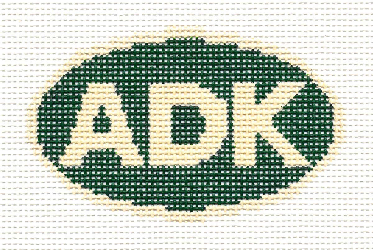 Oval ~ "ADK" Adirondack Mountains, New York Ornament in Green 13 Mesh handpainted Needlepoint Canvas by Silver Needle