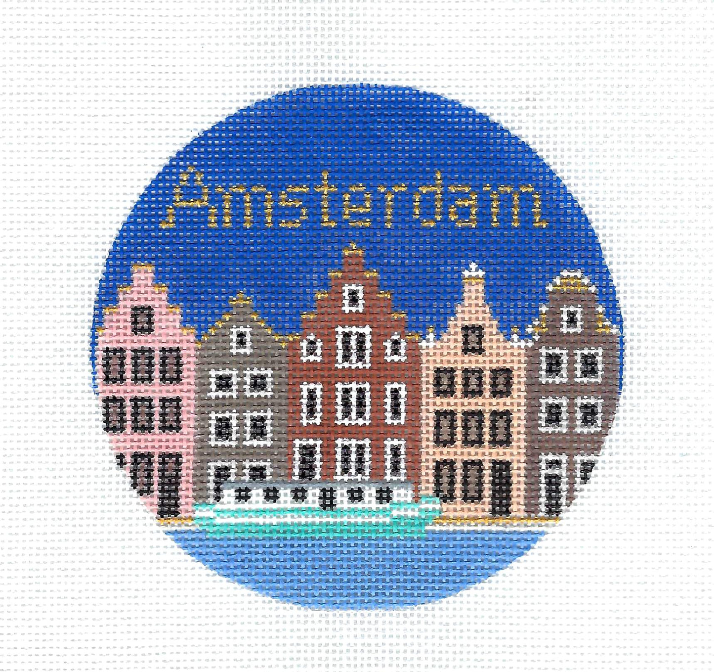 Travel Round ~ Amsterdam, Holland 18 Mesh handpainted 4.25" Needlepoint Ornament Canvas by Silver Needle