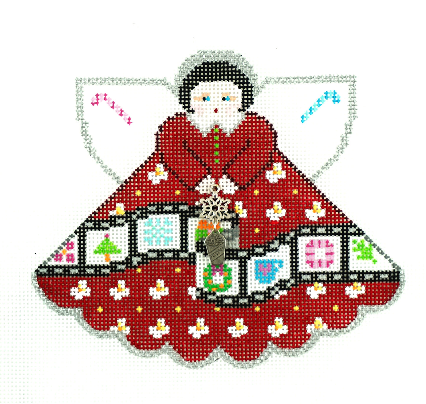 Angel ~ Christmas Movies Angel w/ Charms & Popcorn handpainted 18 mesh Needlepoint Canvas by Painted Pony