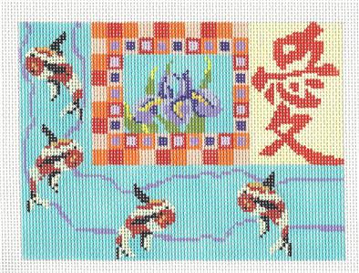 Oriental Canvas ~ Asian Koi Pond handpainted Needlepoint Canvas & STITCH GUIDE by Patt & Lee RETIRED