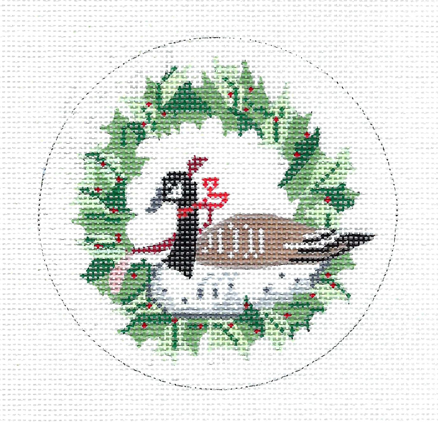 Bird ~ Canada Goose in Holly Wreath 4" Ornament handpainted 18 Mesh Needlepoint Canvas by MM Designs