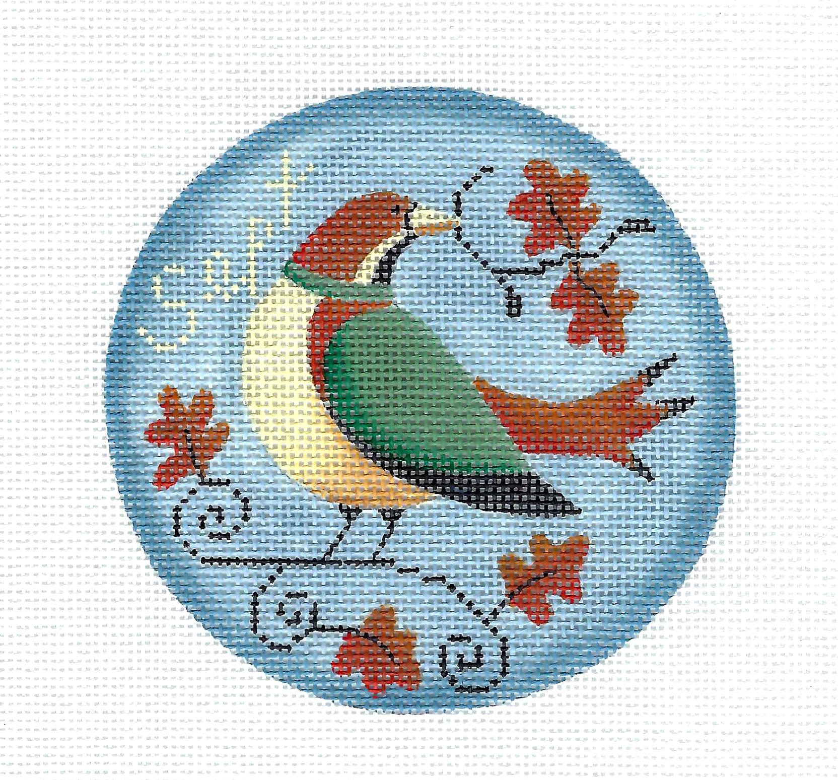 BIRD of the MONTH ~ SEPTEMBER ~ Bird & Oak Leaves handpainted 18mesh Needlepoint Canvas by Rebecca Wood (Copy)