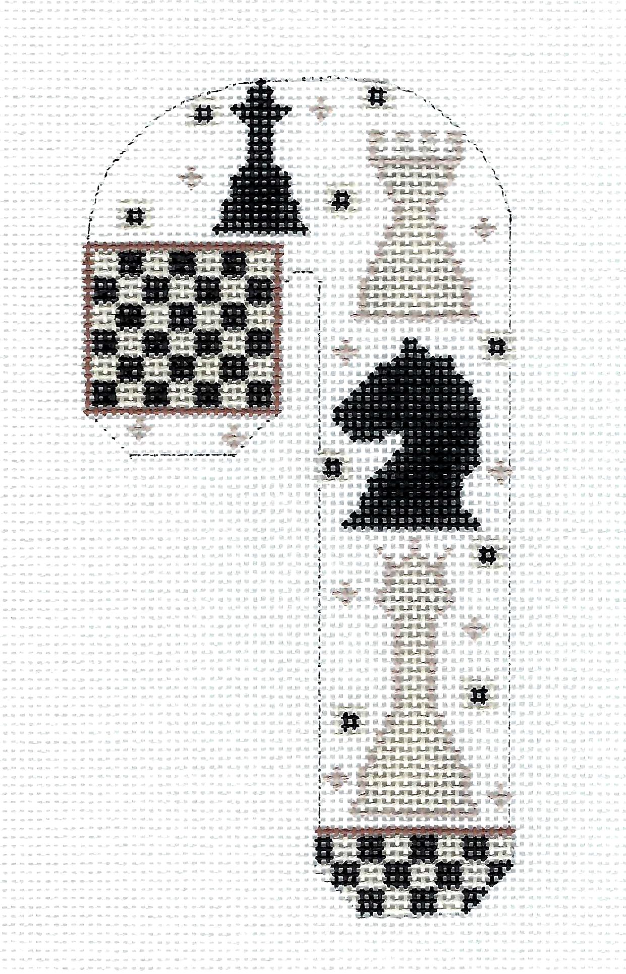 Candy Cane ~ GAME of CHESS MED. Candy Cane 18 Mesh handpainted Needlepoint Ornament Canvas by CH Designs from Danji