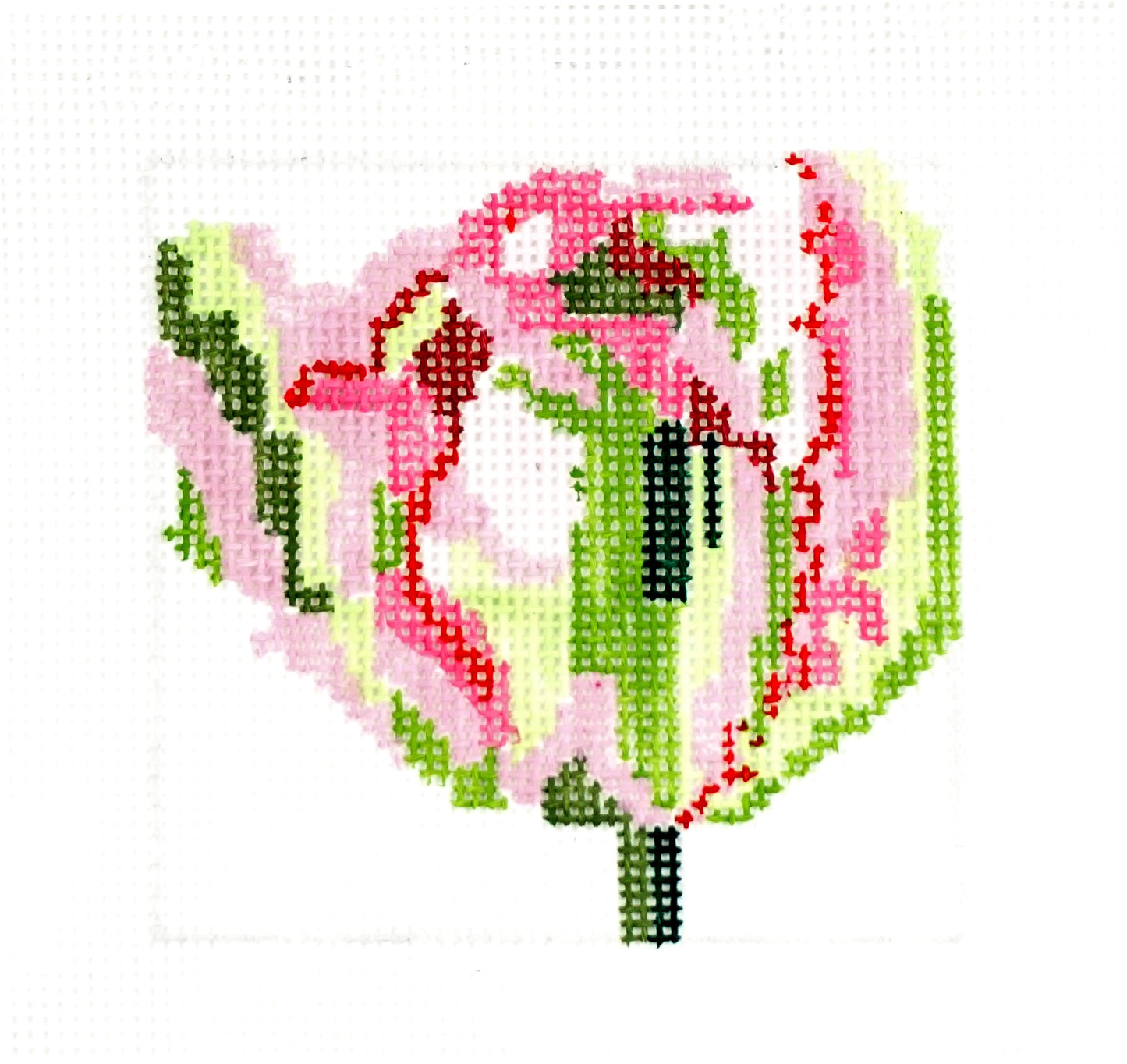 Coaster ~ Pink Princess Tulip 4" Sq. Coaster 13 mesh handpainted Needlepoint Canvas from Jean Smith