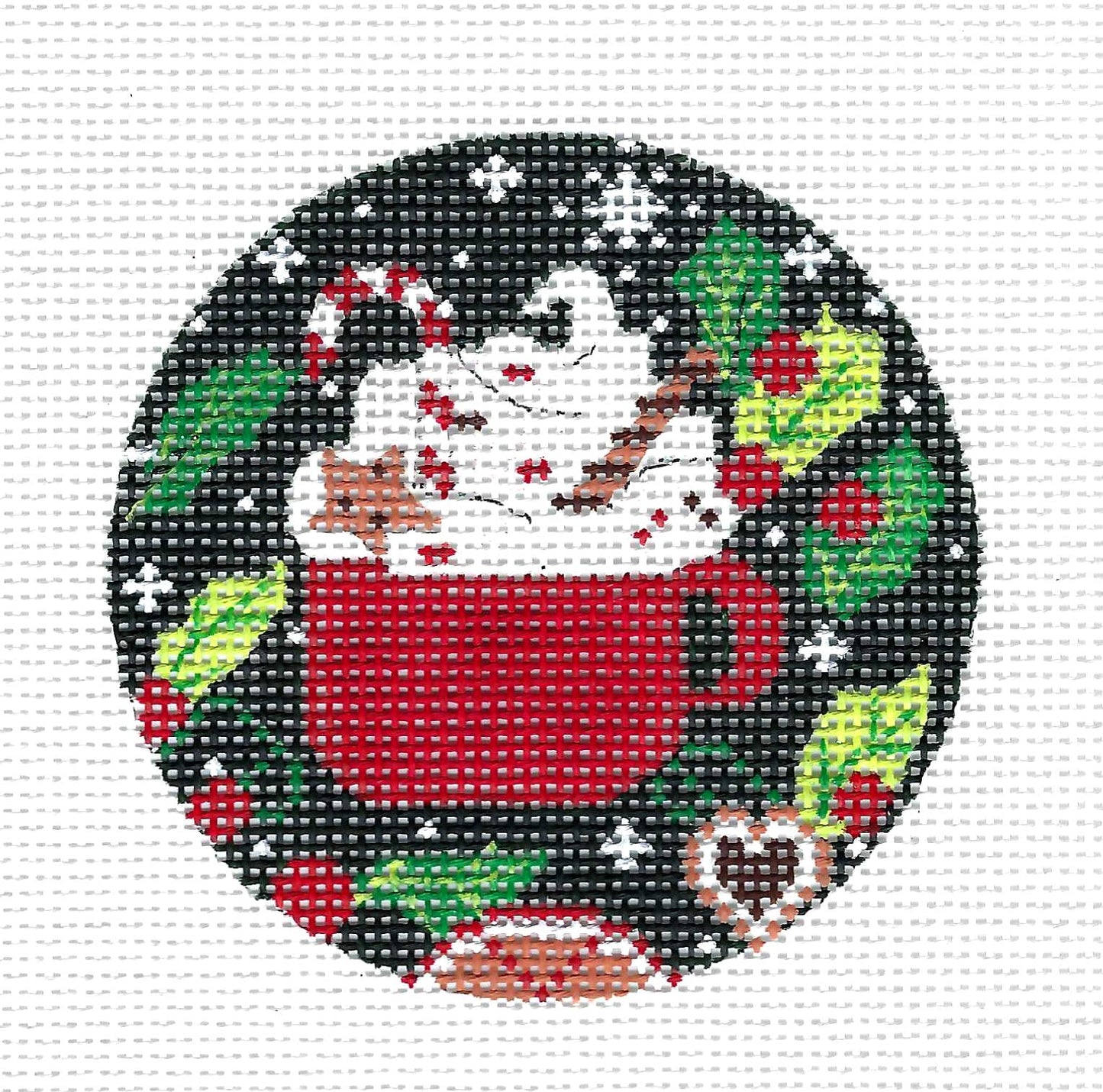 4" Rd. ~ Cup of Cocoa with Christmas Holly & Candy 13 Mesh Ornament handpainted Needlepoint Canvas by Alice Peterson