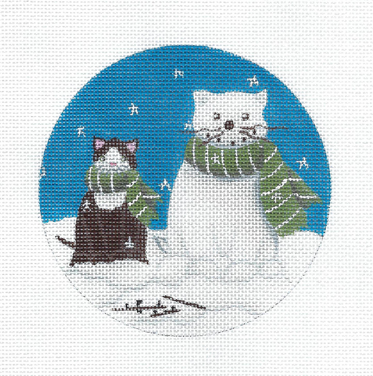 CAT ~ Black Cat & Snowman Cat handpainted Needlepoint Canvas by Ginny Diezel from CBK