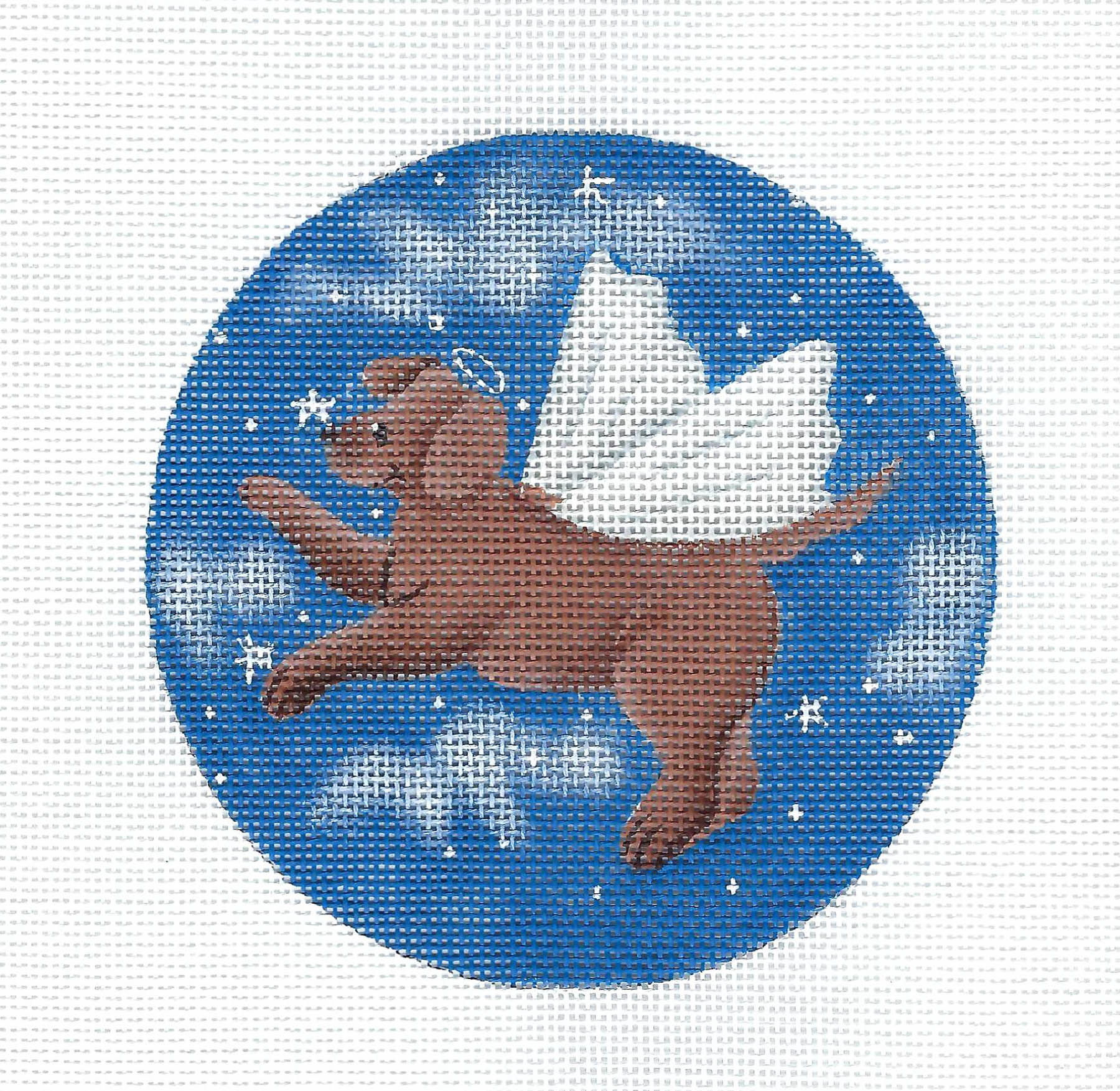 Rainbow Bridge ~ Angel DOG in Heaven handpainted 18 Mesh 4.5" Rd. Needlepoint Canvas by Ginny Diezel from CBK