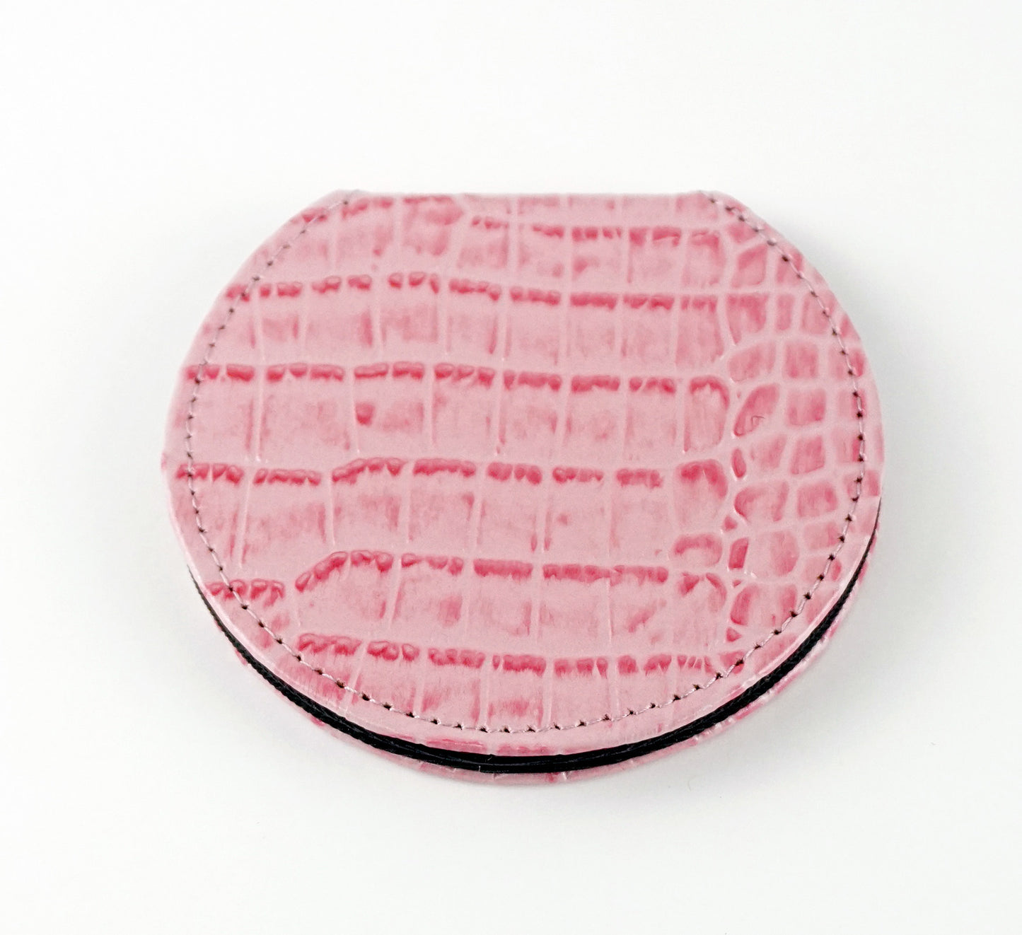 Accessory ~ Light Pink Alligator Leather Folding Purse Mirror for a 3" Needlepoint Canvas by LEE