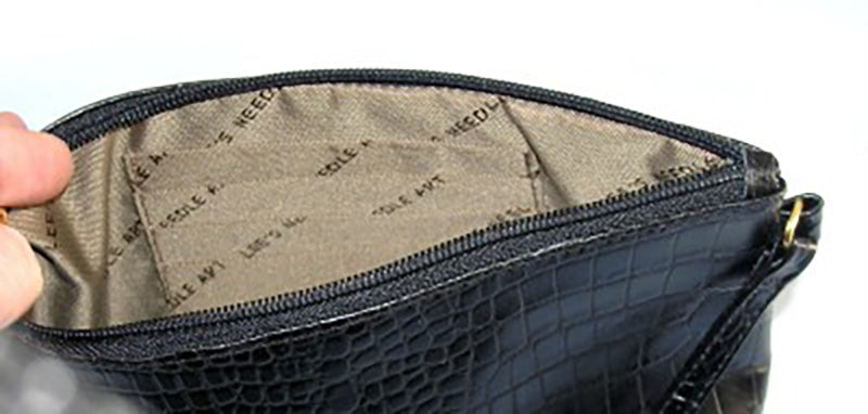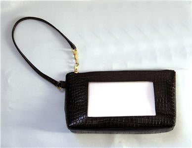 Black Alligator Textured Leather Wrist Purse with Zipper & Handle