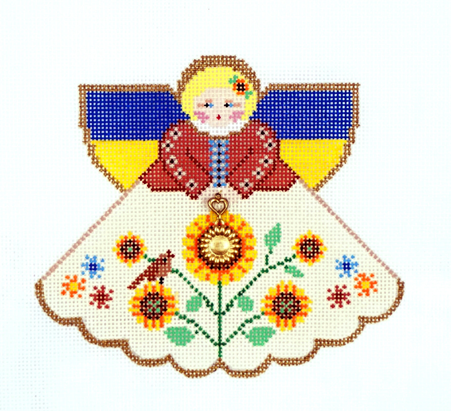 Angel ~ Ukraine Angel & Charms handpainted Ukrainian Needlepoint Ornament Canvas by Painted Pony