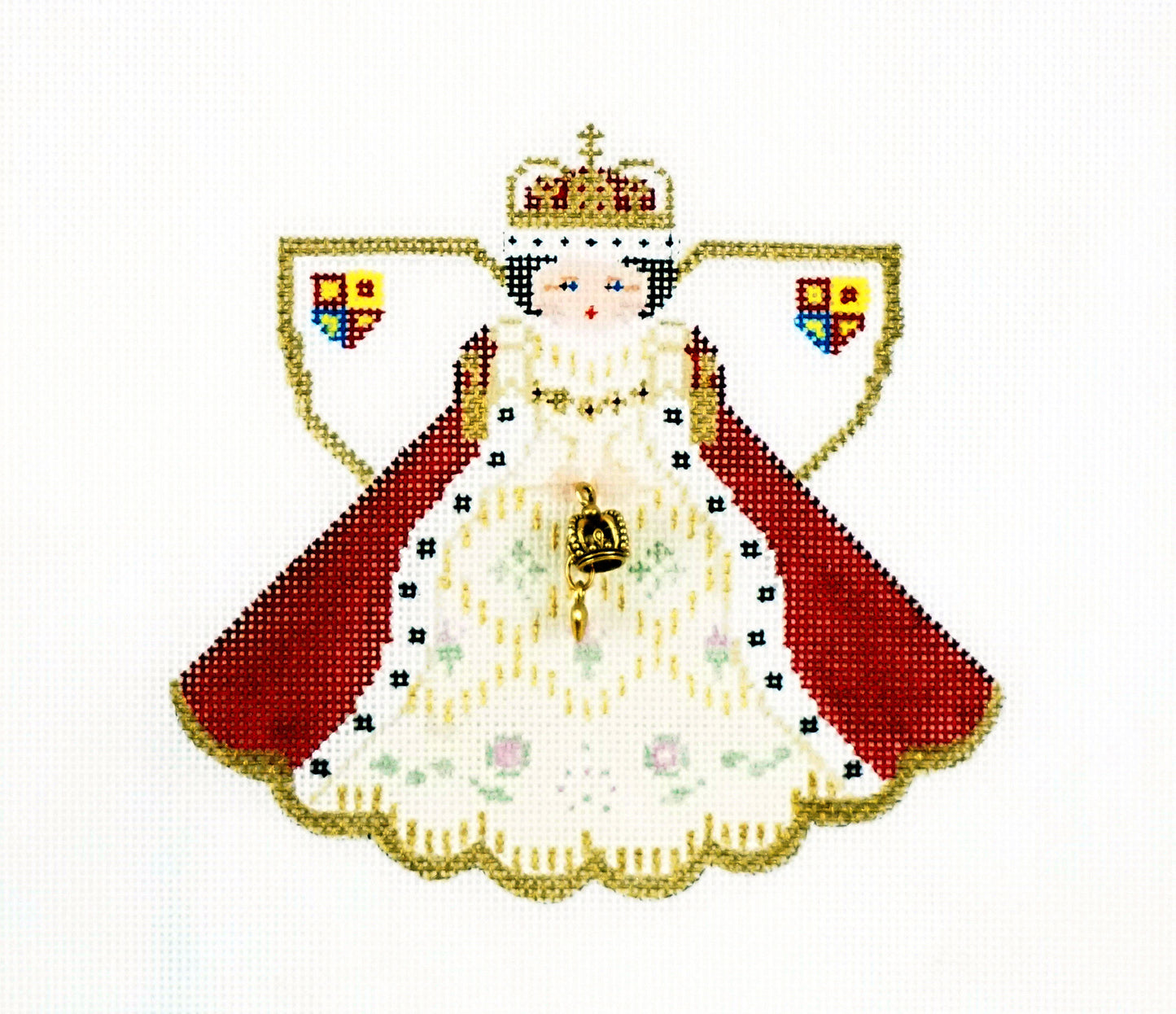 Angel ~ Queen Elizabeth 2nd England Angel with Charm handpainted 18 mesh Needlepoint Canvas by Painted Pony