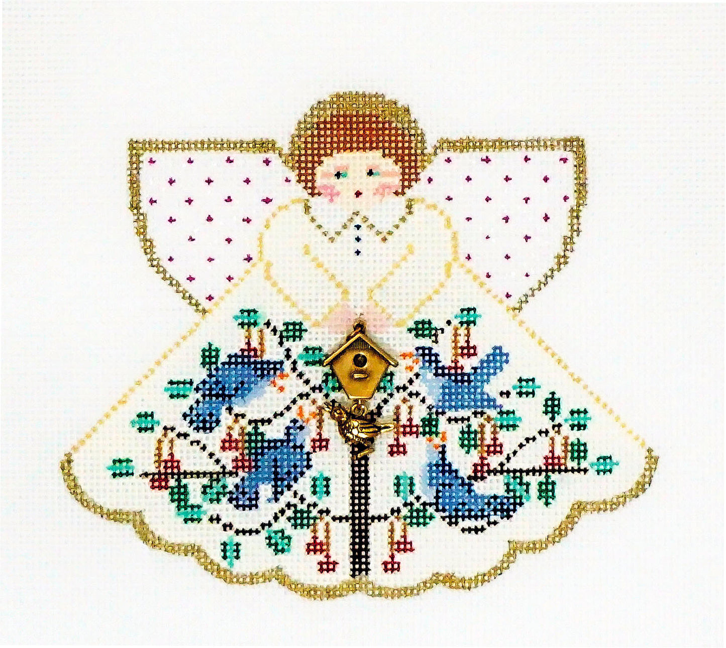 Angel ~ 12 Days of Christmas ~ Four CALLING BIRDS Angel & Charms 18 mesh handpainted Needlepoint Canvas by Painted Pony