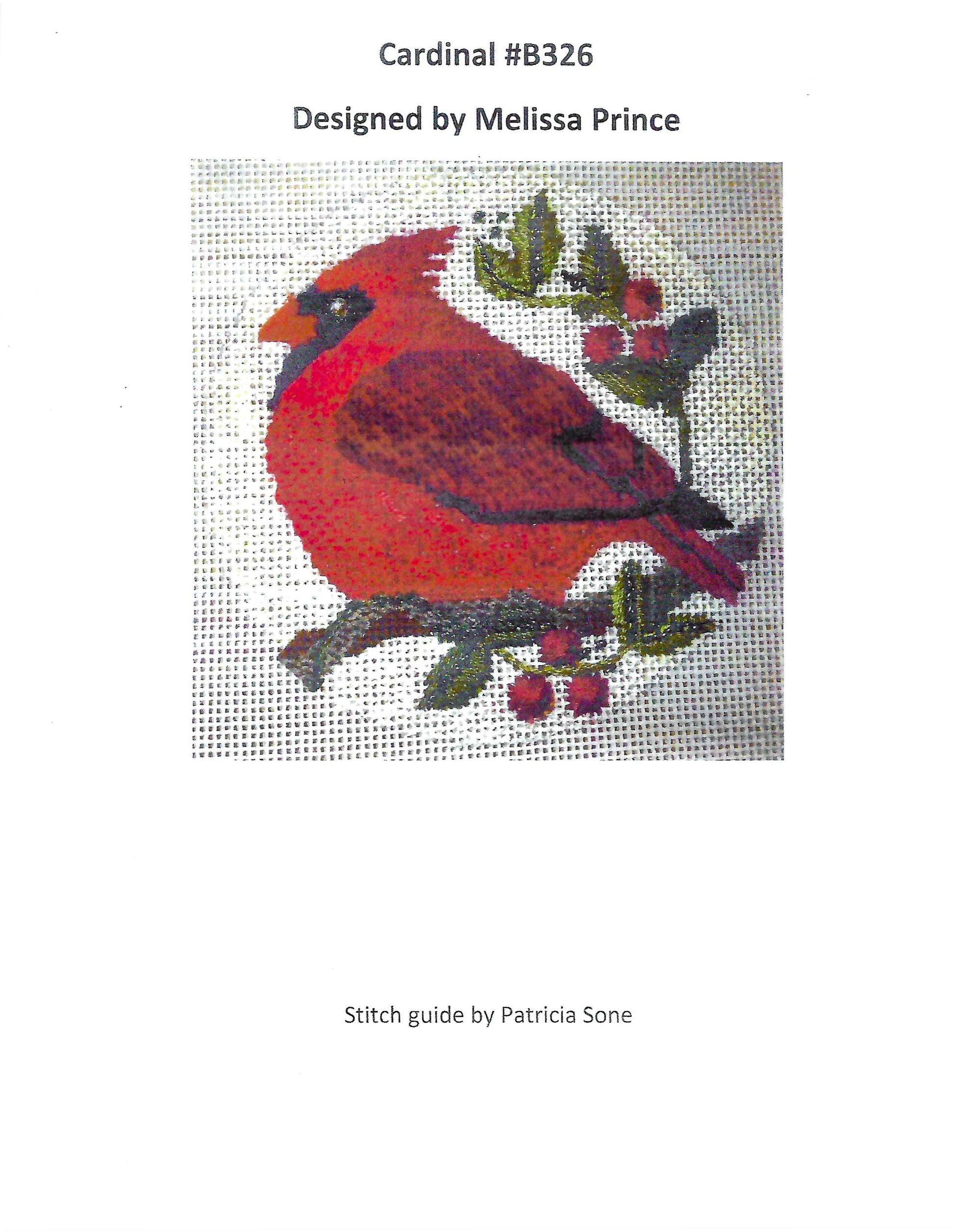 Bird Canvas ~ Cardinal Bird handpainted 4" Rd. Ornament & STITCH GUIDE Needlepoint Canvas by Melissa Prince