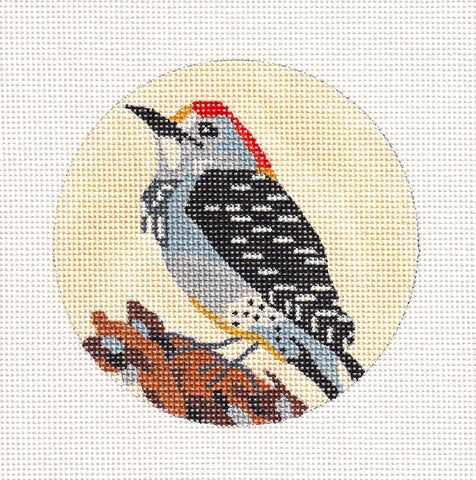 Bird Round ~ Woodpecker Bird handpainted 4" Rd. Needlepoint Ornament by Melissa Prince