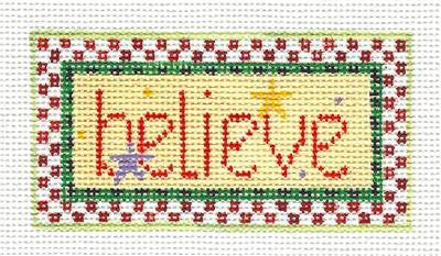 Canvas ~ BELIEVE ~ handpainted Needlepoint Canvas Ornament by Kathy Schenkel