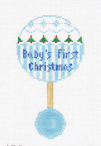 Baby Canvas ~ Baby Boy First Christmas Blue Rattle HP 18 Mesh Needlepoint Canvas by Kathy Schenkel