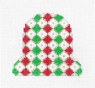 Christmas ~ Red, Gold and Green Bell with Metal Bell handpainted 13 mesh Needlepoint Canvas from Danji