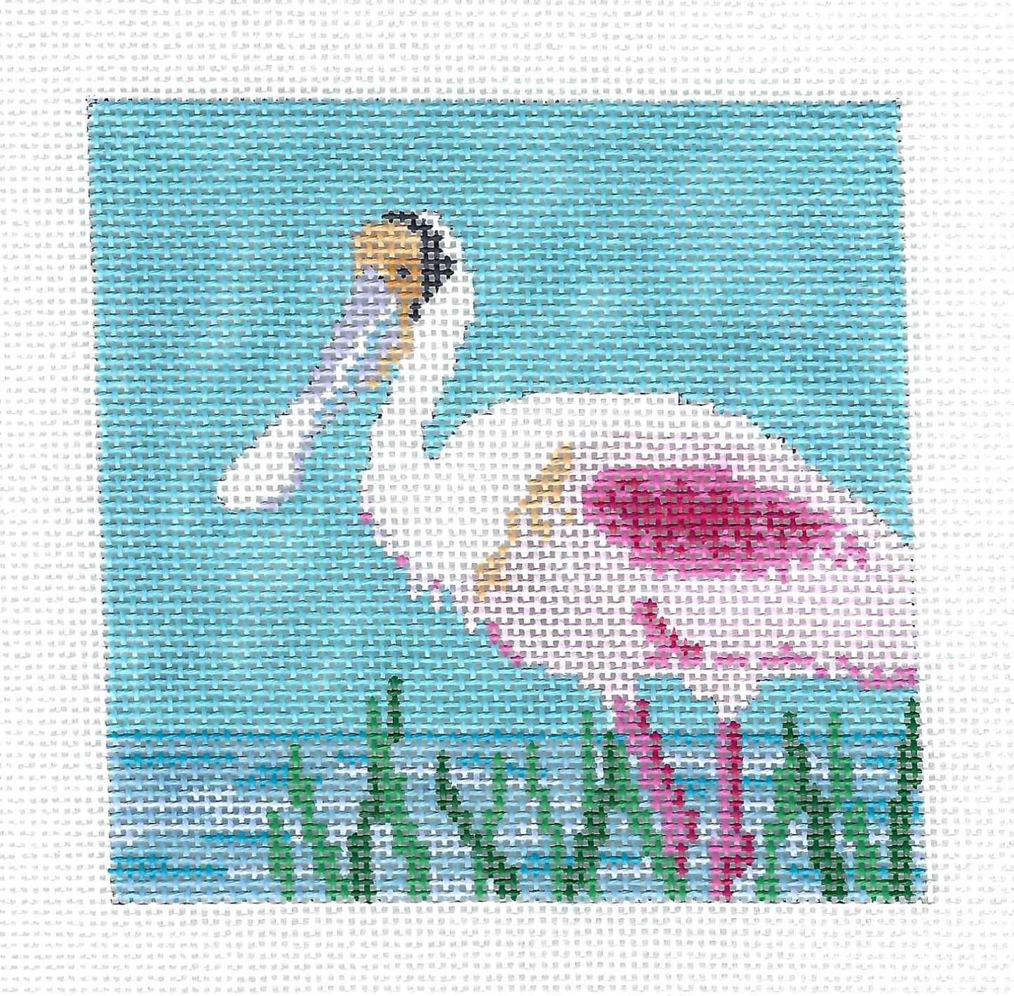 Coaster ~ Roseate Spoonbill 4" Sq. handpainted Needlepoint Coaster or Ornament by Susan Roberts