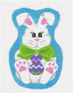 Canvas ~ Easter Bunny with Bow Tie & Egg handpainted Needlepoint Ornament by Pepperberry