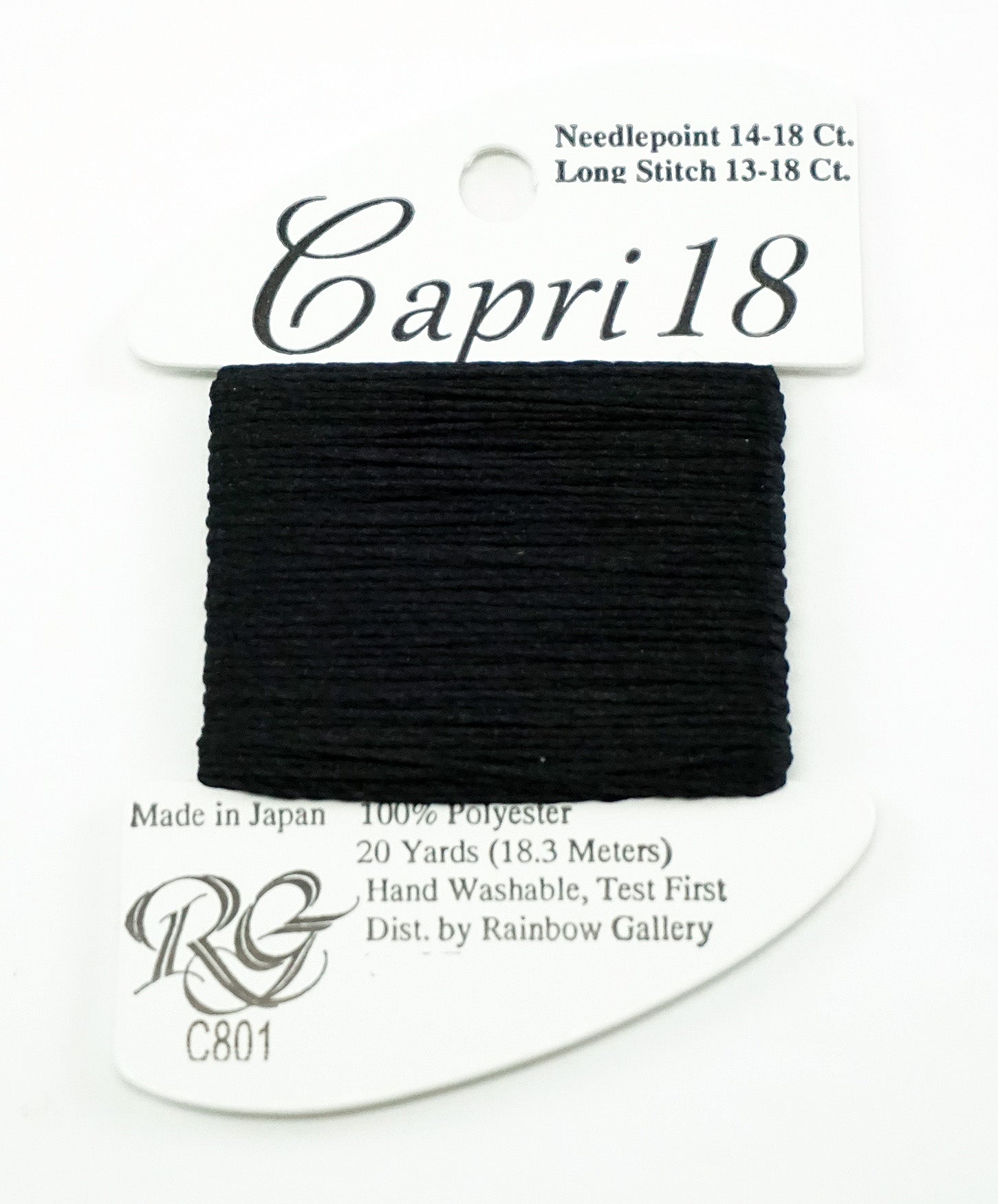 CAPRI 18 ~ Stitching Fiber Black #C801 20 Yd. Single Ply Needlepoint Thread by Rainbow Gallery