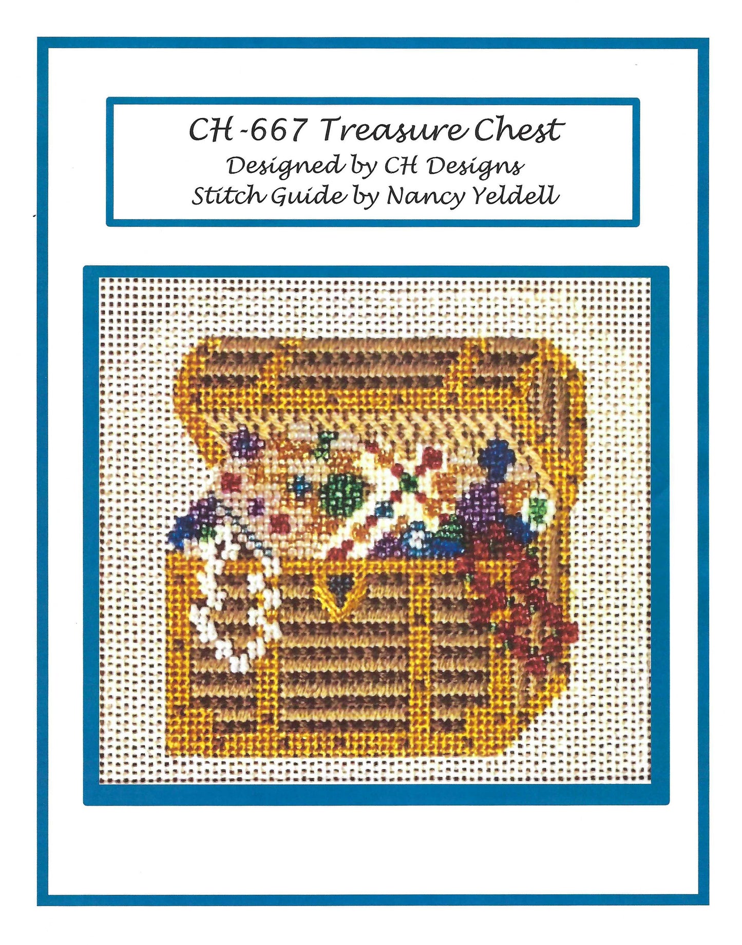 TREASURE CHEST of Jewels 18 Mesh Needlepoint Canvas & STITCH GUIDE by CH Designs from Danji