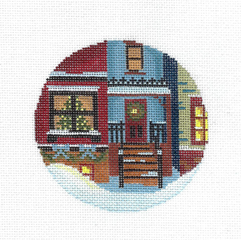Christmas Eve Town #2 handpainted Needlepoint Ornament Canvas by Abigail Cecile