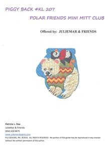 Mitten ~ Piggy Back Penguin on a Polar Bear Club 18 mesh handpainted Needlepoint Canvas & STITCH GUIDE by JulieMar