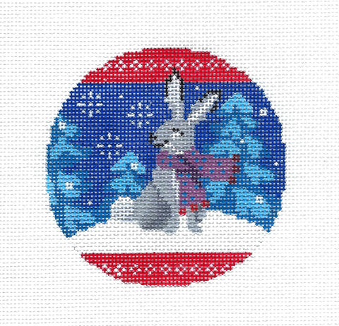 Rabbit in Blue Woods handpainted Needlepoint Ornament Canvas by Abigail Cecile from Juliemar