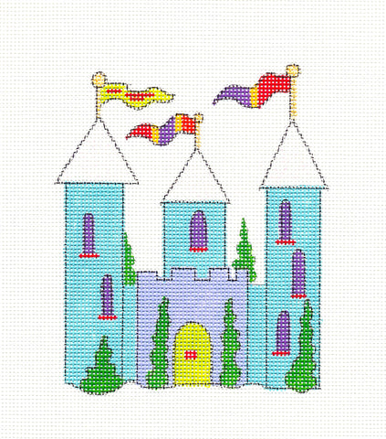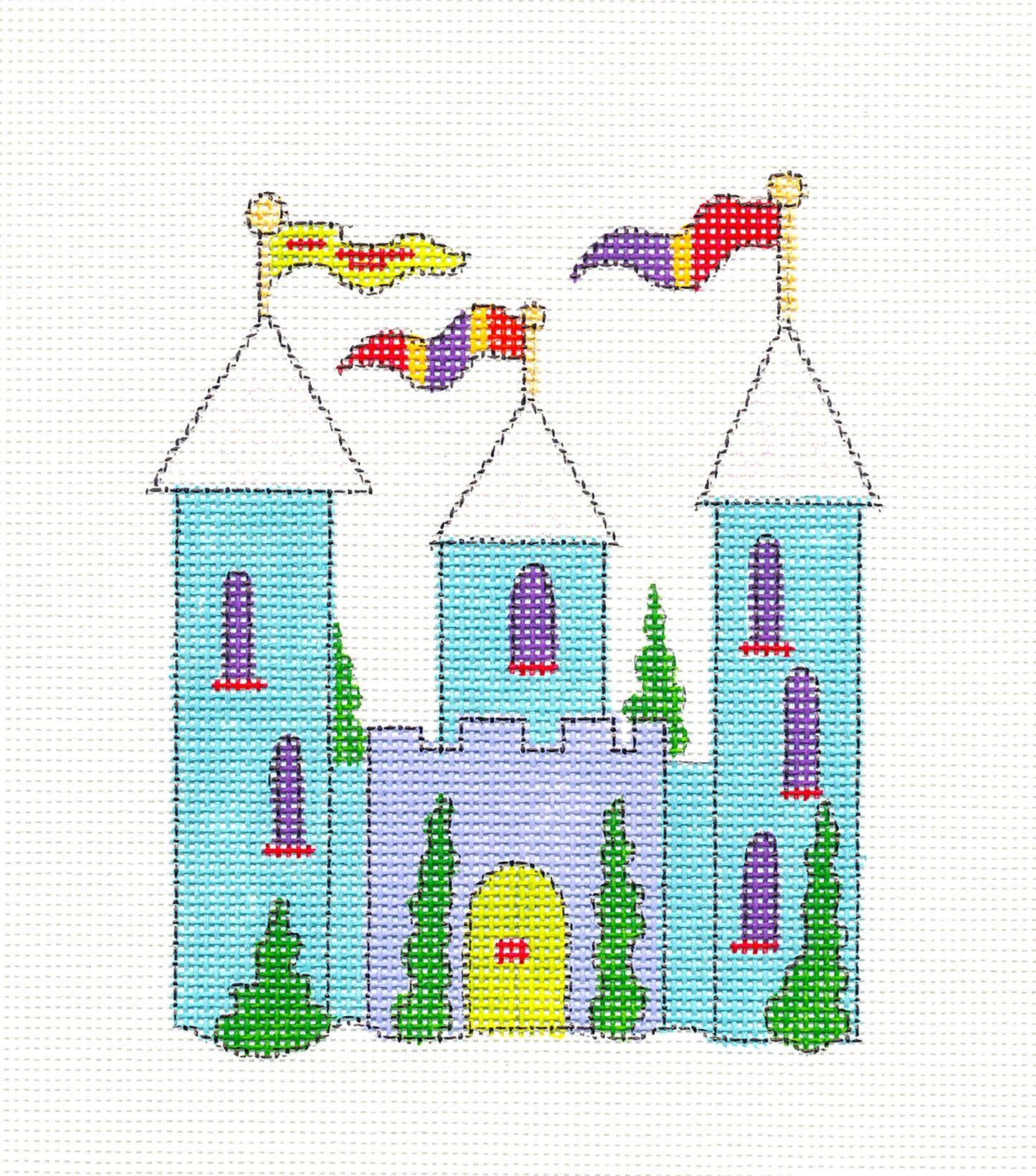 Child's ~ LITTLE GIRL'S Fairy Tale Blue Princess CASTLE handpaintd Needlepoint Canvas Boots Bailey
