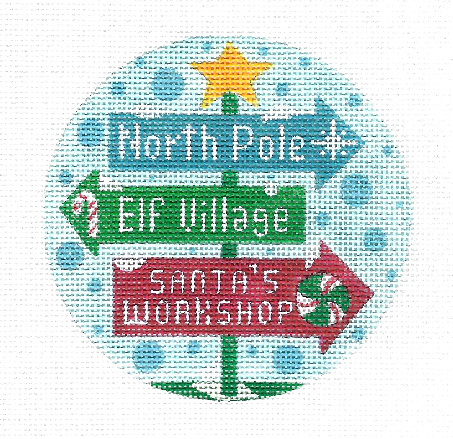 Christmas Round ~ Christmas Santa's Workshop & the North Pole 18 mesh 4" handpainted Needlepoint Canvas Ornament Alice Peterson