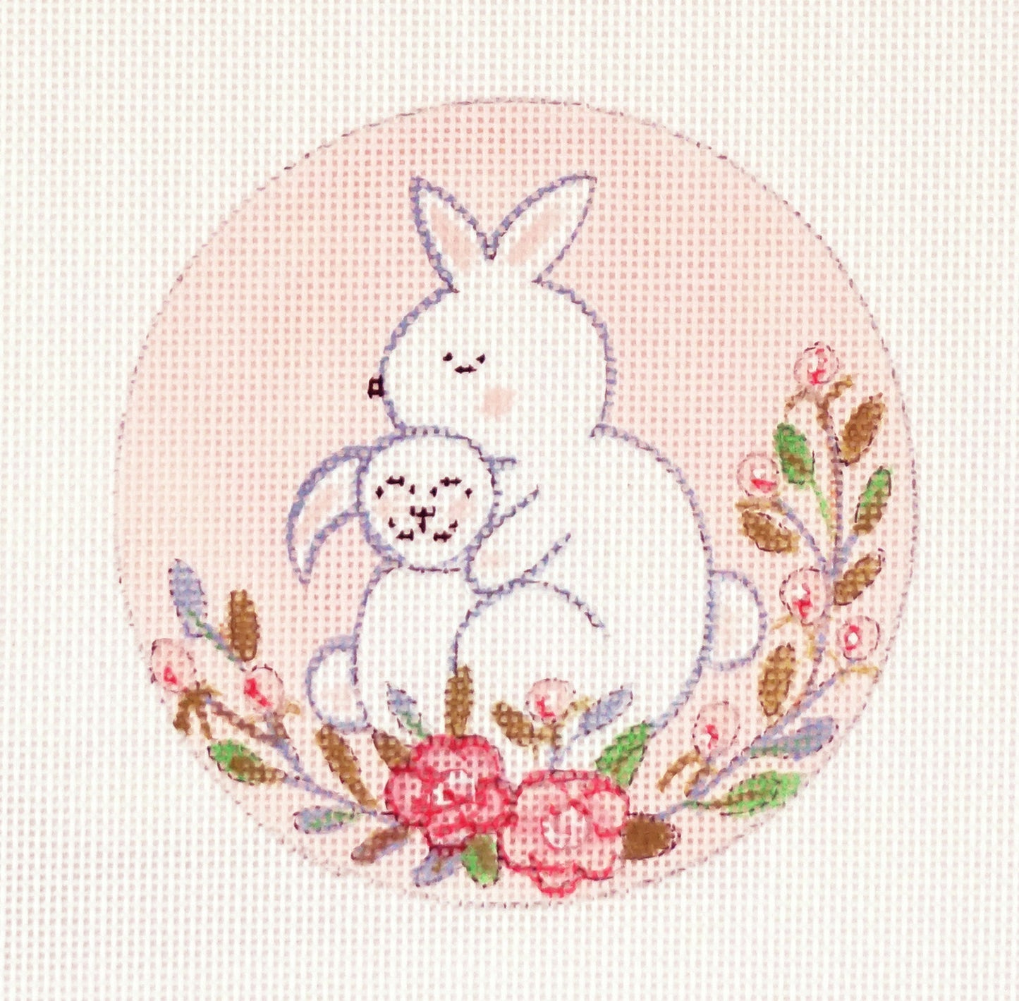 Mom & Baby Bunny LOVE handpainted 18 Mesh Needlepoint Canvas by Alice Peterson