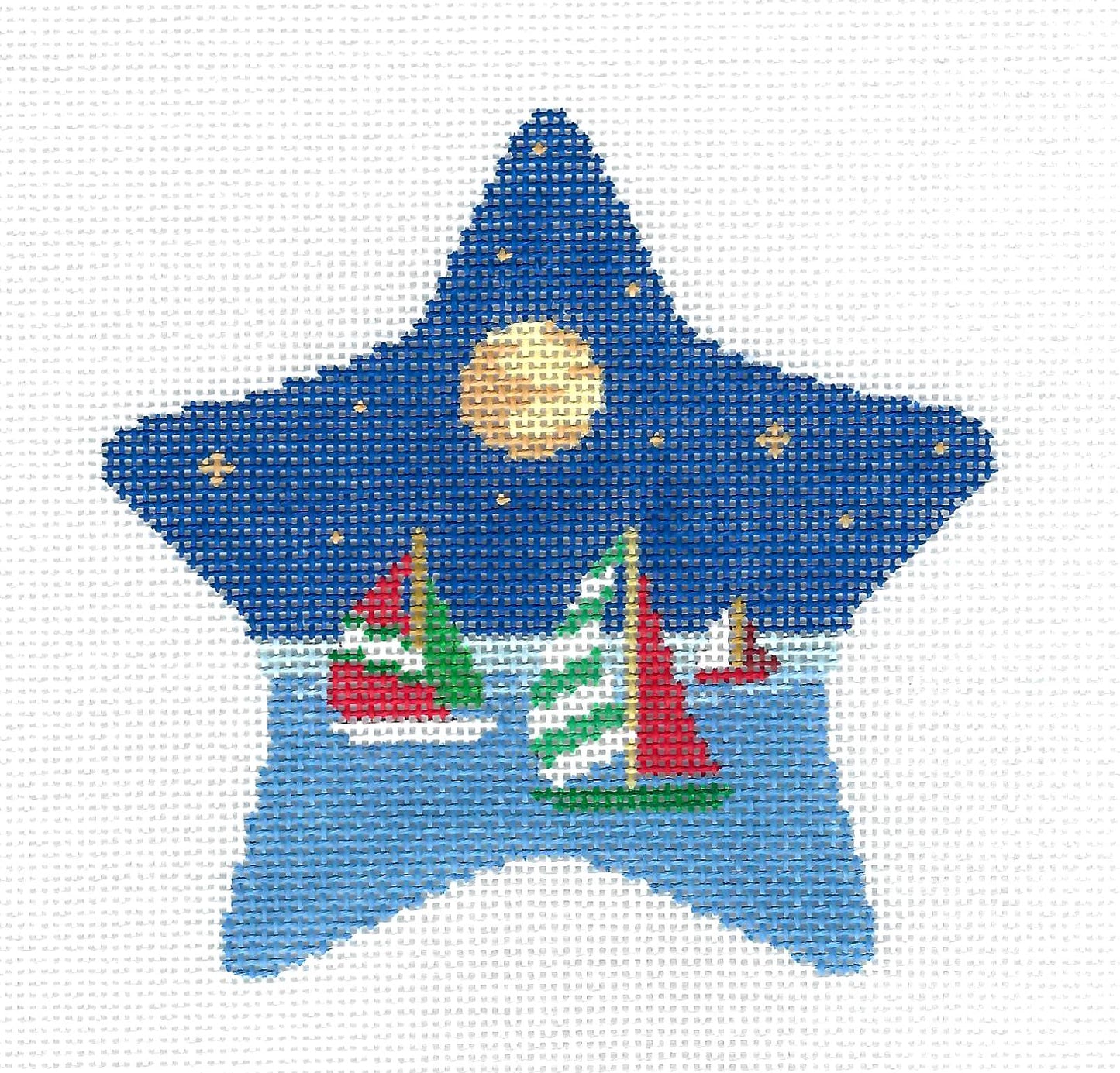 STAR ~ Moonlit Sail 3 Sailboats Under a Full Moon handpainted Needlepoint STAR Ornament by Susan Roberts