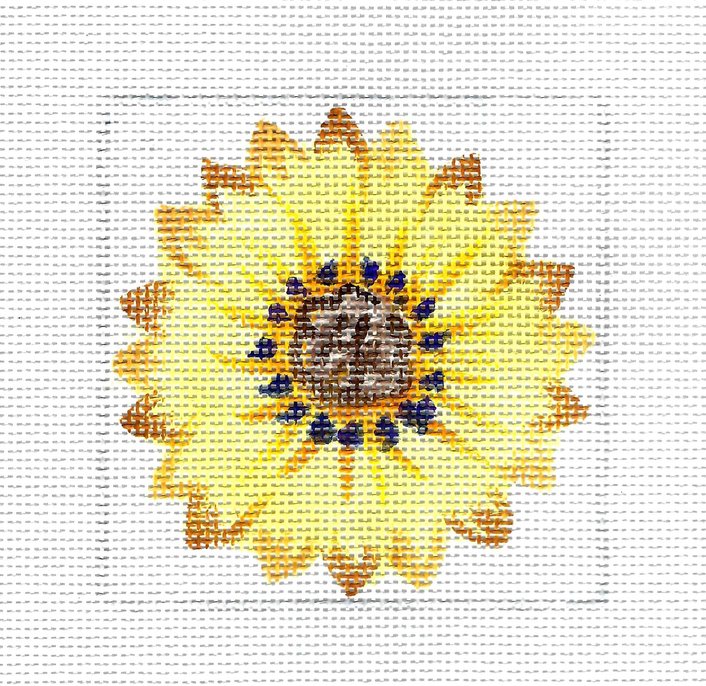 Coaster ~ Yellow Sunflower 4" Sq. Coaster 13 Mesh handpainted Needlepoint Canvas Jean Smith