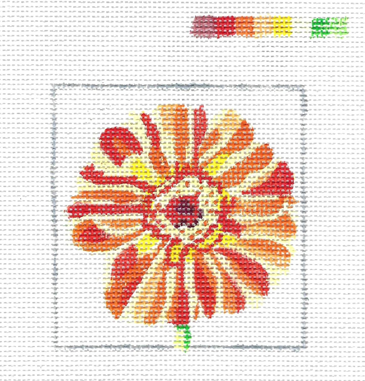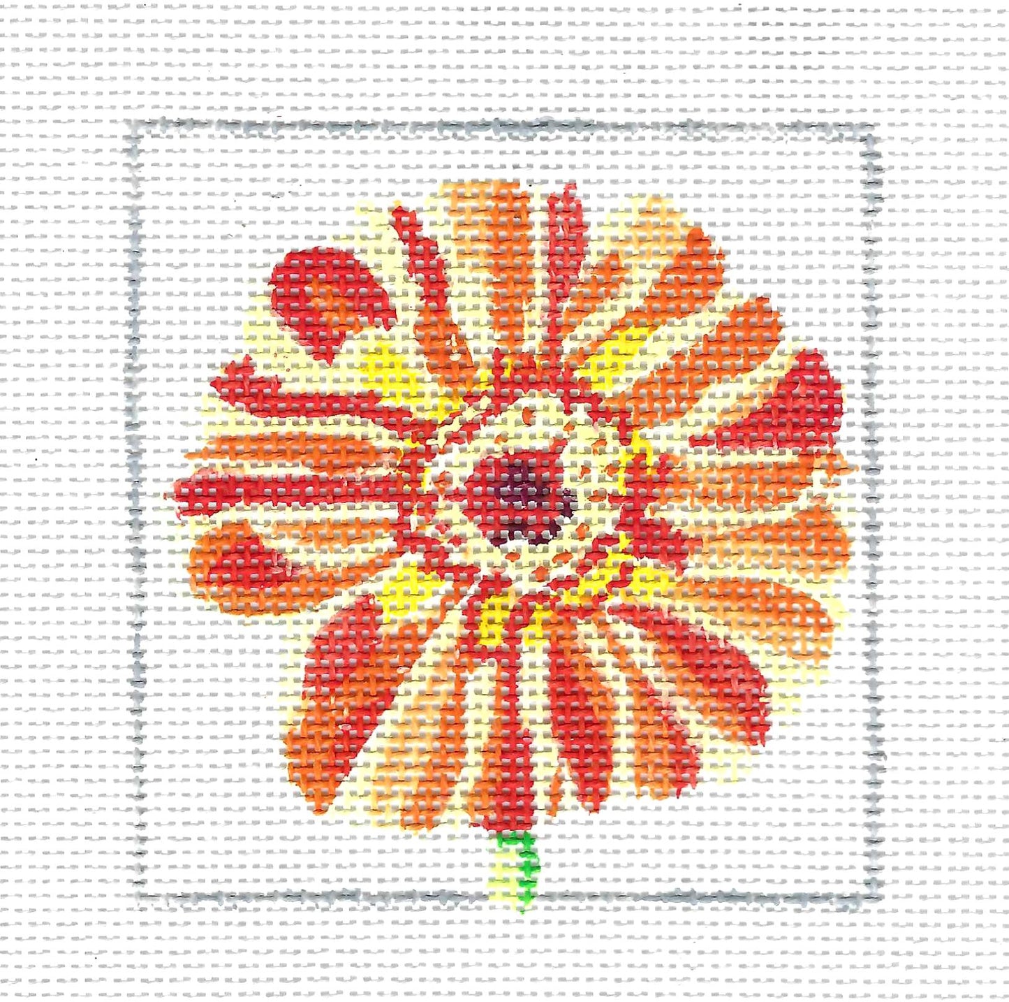 Coaster ~ Orange & Yellow Zinnia 4" Sq. Coaster handpainted 13 Mesh Needlepoint Canvas Jean Smith
