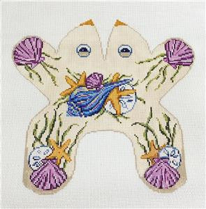Door Stop ~ Seashells Frog 3-D Beanbag Soft Sculpture handpainted 13 Mesh Needlepoint Canvas by Needle Crossings