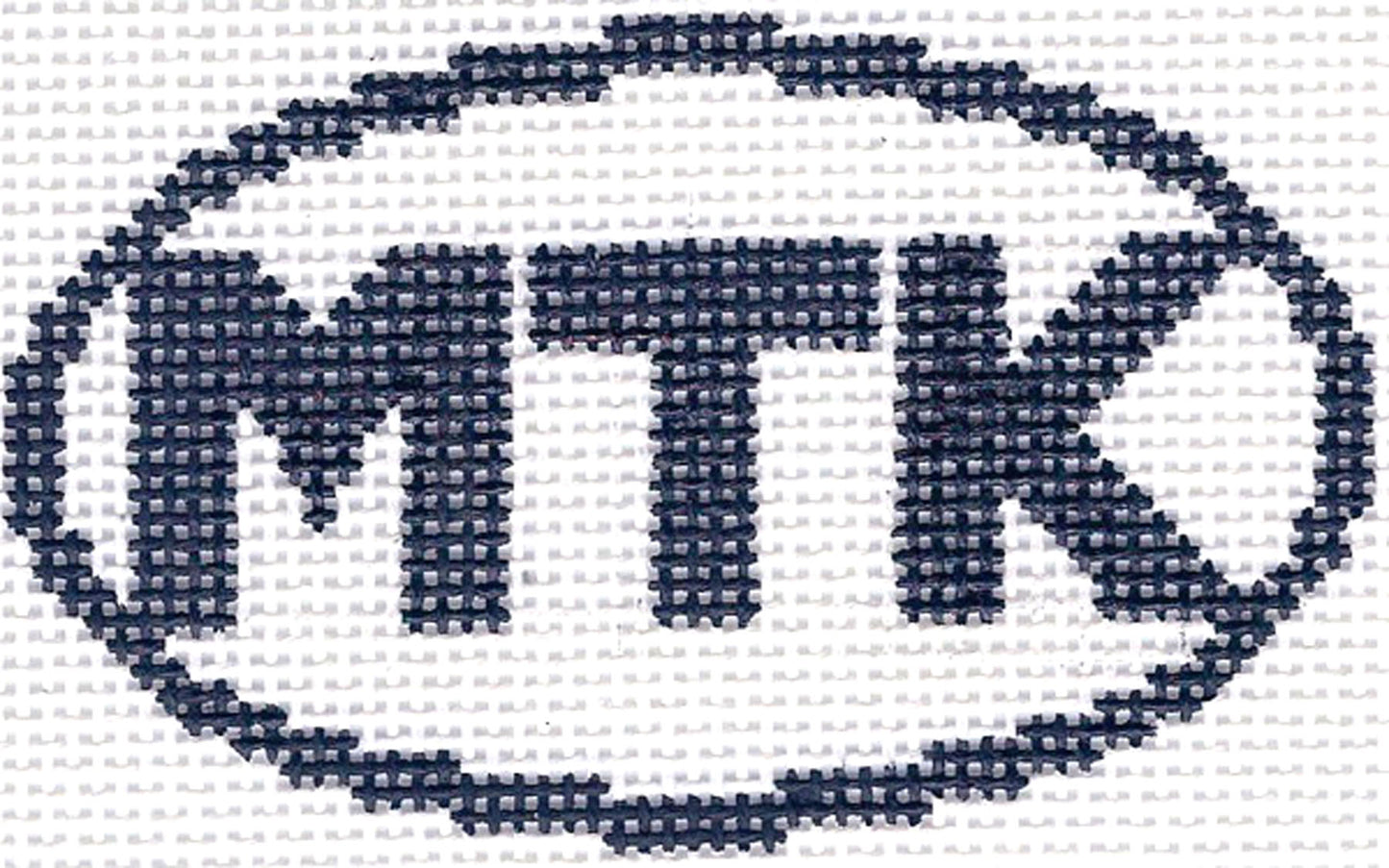 This is a Handpainted 4.25" by 2.5" design, hand painted in Black and White on 13 mesh mono canvas. The painted design has a surrounding background area of approximately 8" by 6". Perfect for all those items which require a canvas insert! There is a painted color palette along the side for ease in selecting your fibers.