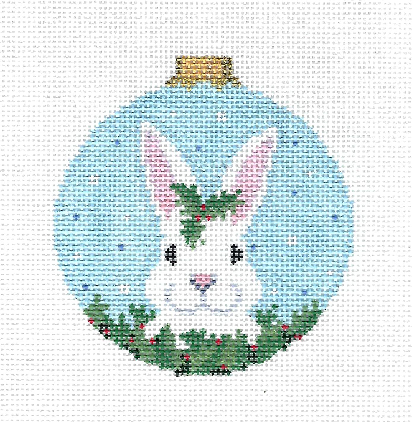 Rabbit ~ White Bunny in a Holly Bush handpainted Needlepoint Ornament by Susan Roberts