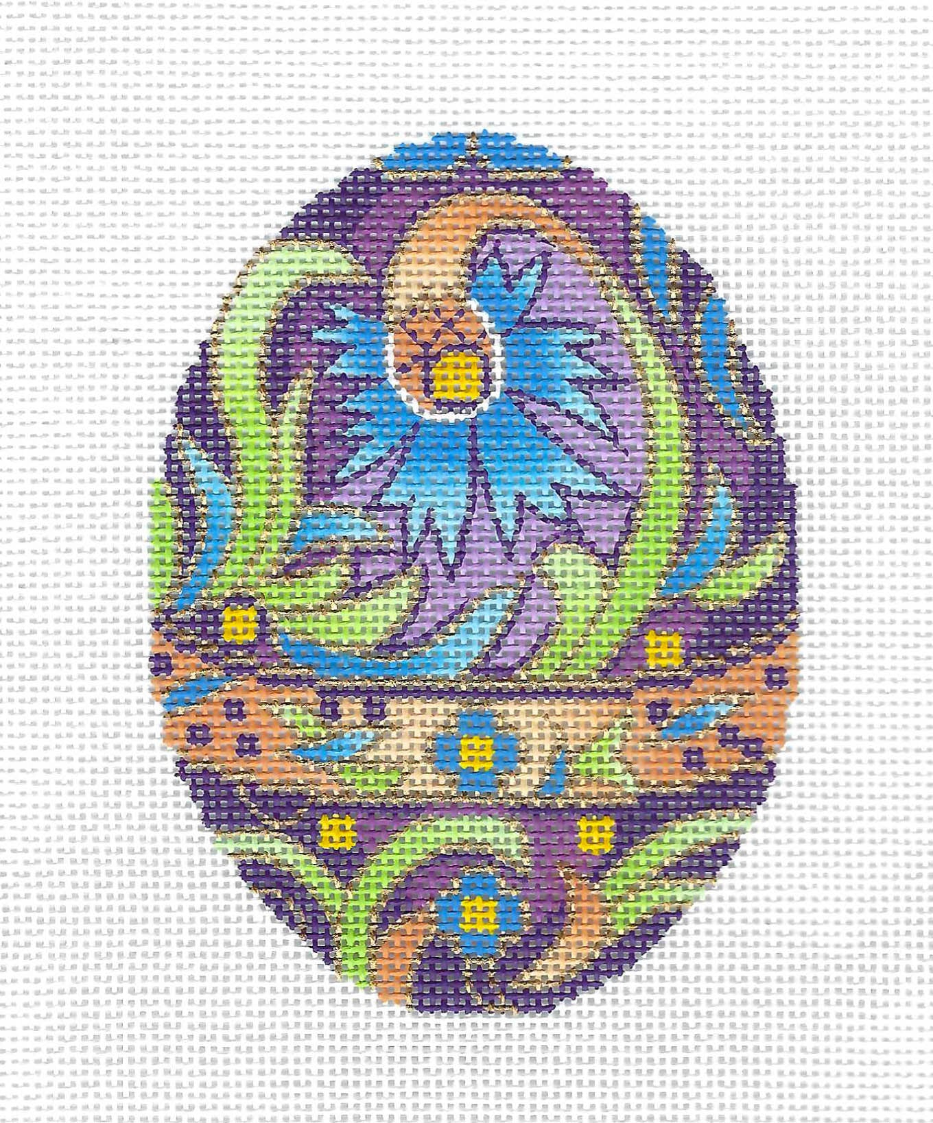 Faberge Egg ~ Jeweled Floral Purple & Metallic Gold EGG 18 mesh handpainted Needlepoint Canvas by LEE