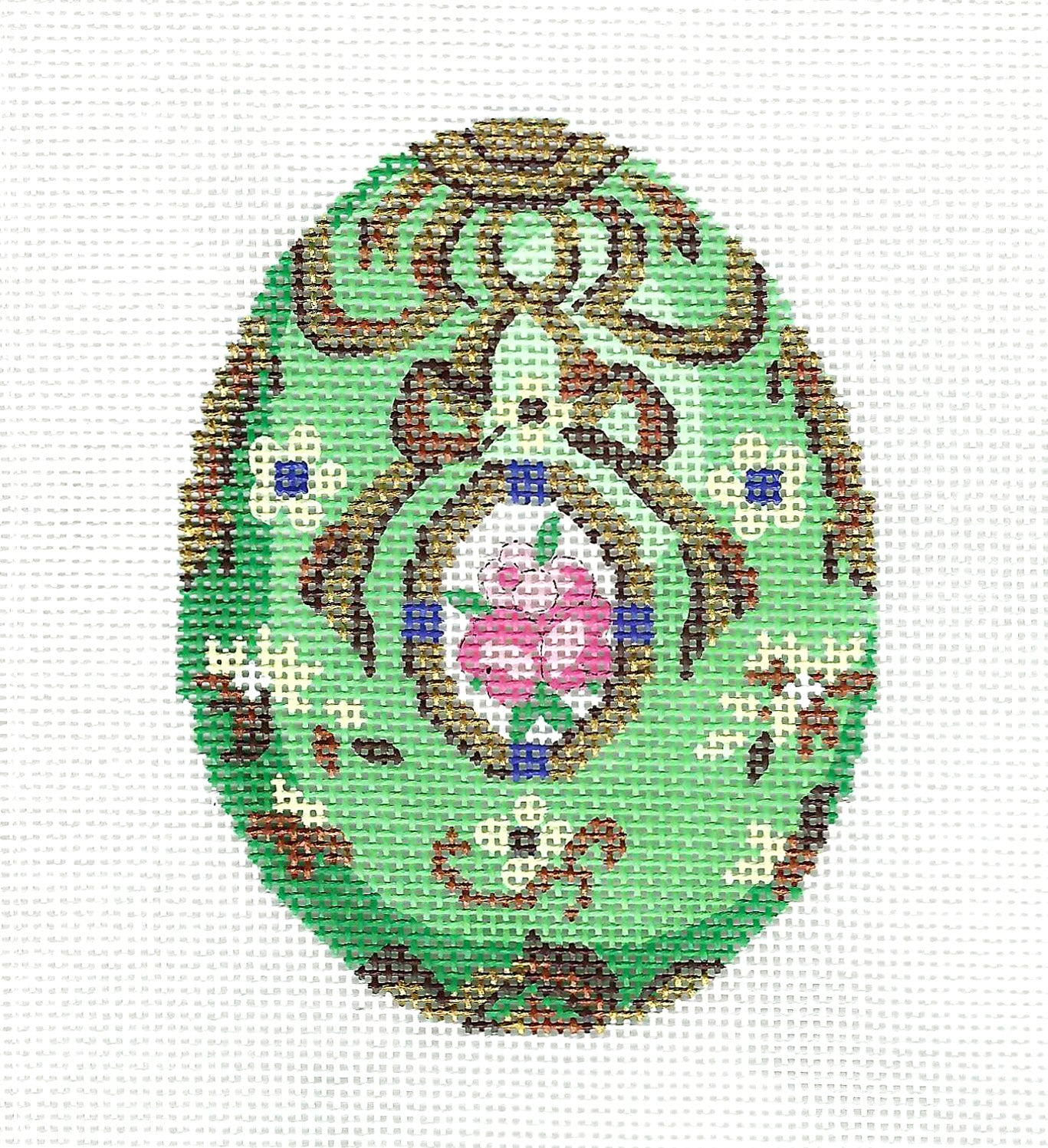Faberge Egg ~ Elegant Soft Green CAMEO Jewels Faberge EGG "EXCLUSIVE" handpainted Needlepoint Canvas Ornament by LEE