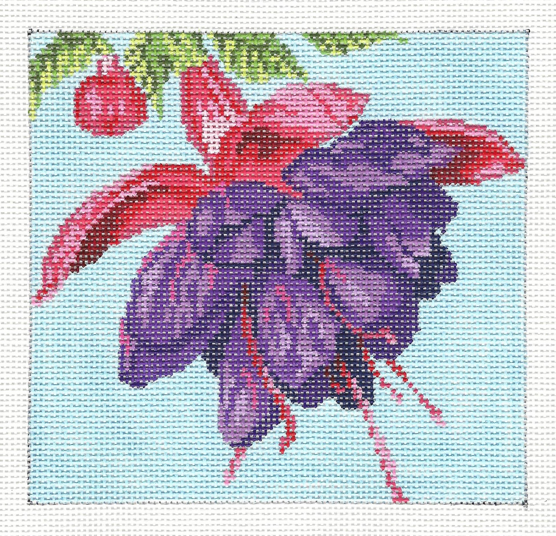Floral ~ Pink & Purple FUCHSIA Blossom 5" Sq. handpainted 18 mesh Needlepoint Canvas by Needle Crossings