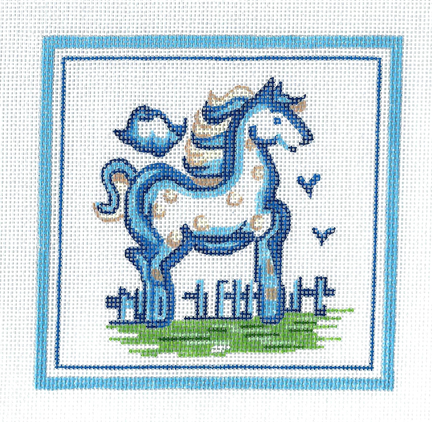 Hadley Pottery ~ HORSE in a Pasture 18 Mesh handpainted 5" SQ. Needlepoint Canvas by Silver Needle