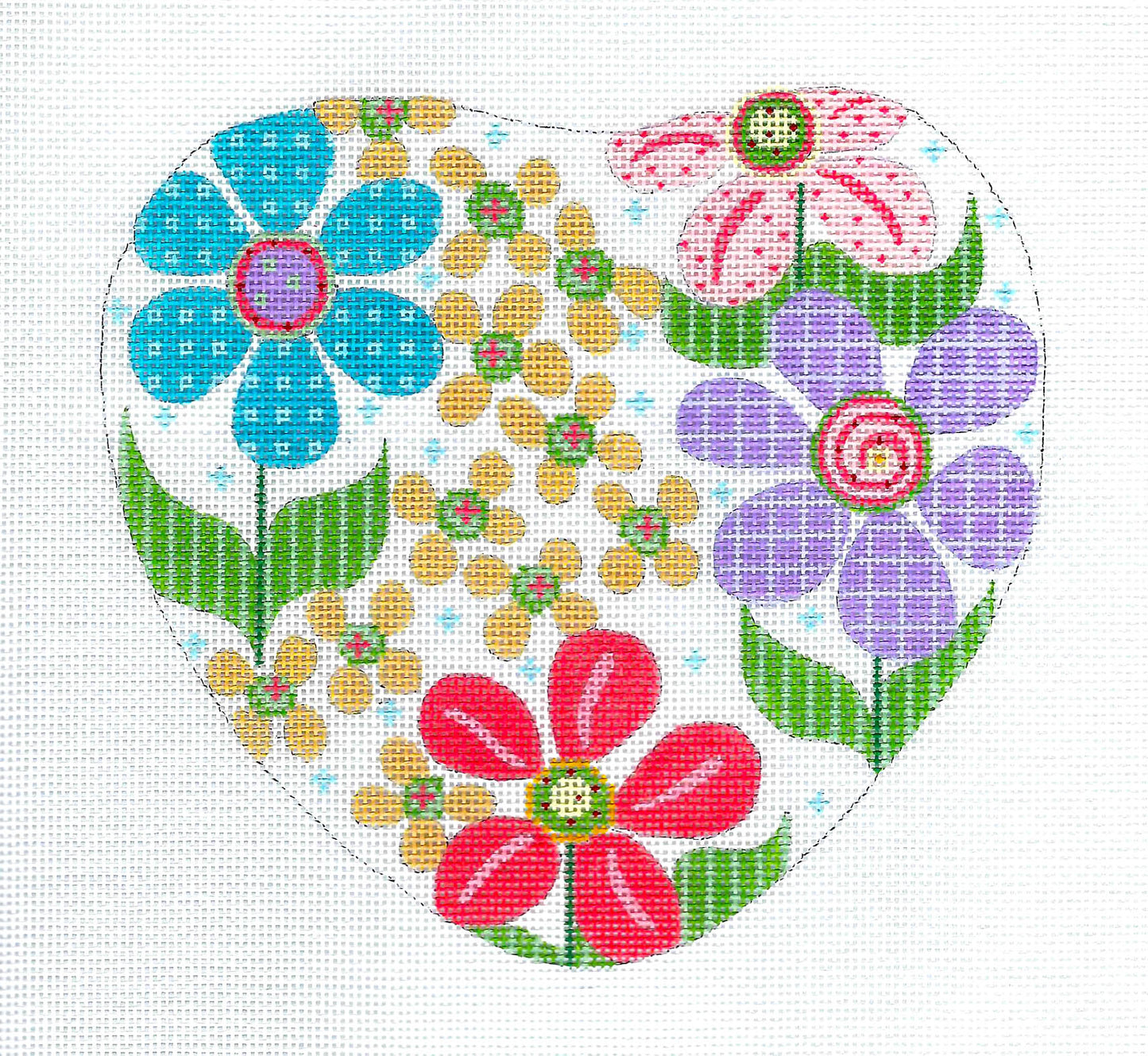Heart ~ FLORAL HEART & STITCH GUIDE SET handpainted 18 Mesh Needlepoint Canvas by CH Designs from Danji