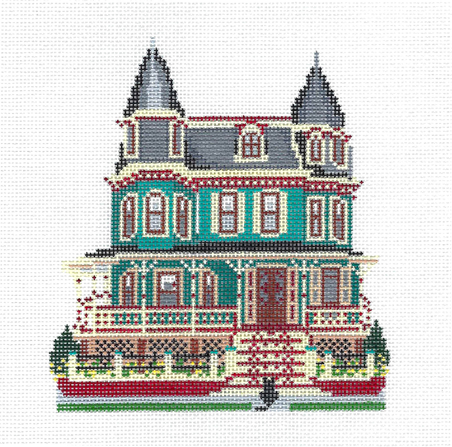 Historic House ~ The Merry Widow Inn, Cape May, New Jersey 13 Mesh handpainted Needlepoint Canvas by Needle Crossings