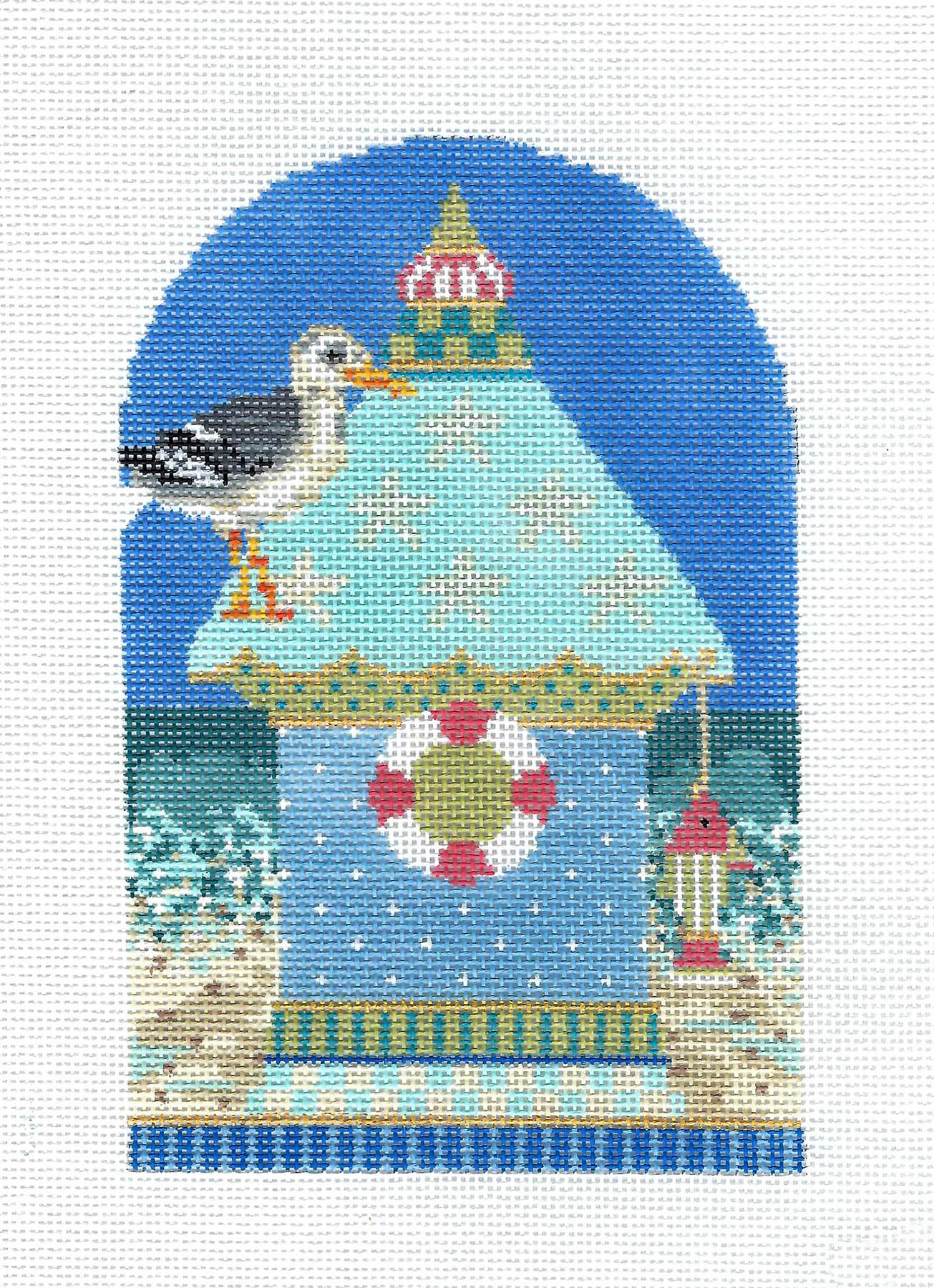 Kelly Clark ~ Birdhouse Seagull Summer Seaside House handpainted Needlepoint Canvas by Kelly Clark