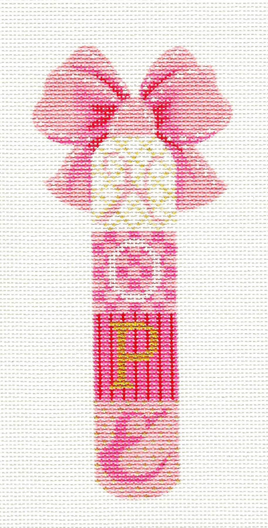 A Beautiful design, covered in Pink and White patterns, and Featuring the word, HOPE, for Breast Cancer Awareness. The candy stick is topped with a big Pink bow, from Kelly Clark Needlepoint.