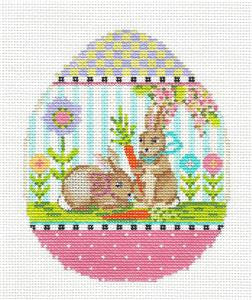 Kelly Clark Egg ~ Easter 2 Bunny Rabbits EGG handpainted 18 mesh Needlepoint Canvas Ornament
