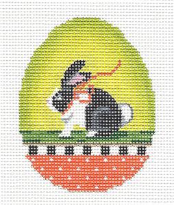 Kelly Clark - Easter Bunny w/ Ribbon Egg handpainted Needlepoint Canvas by Kelly Clark