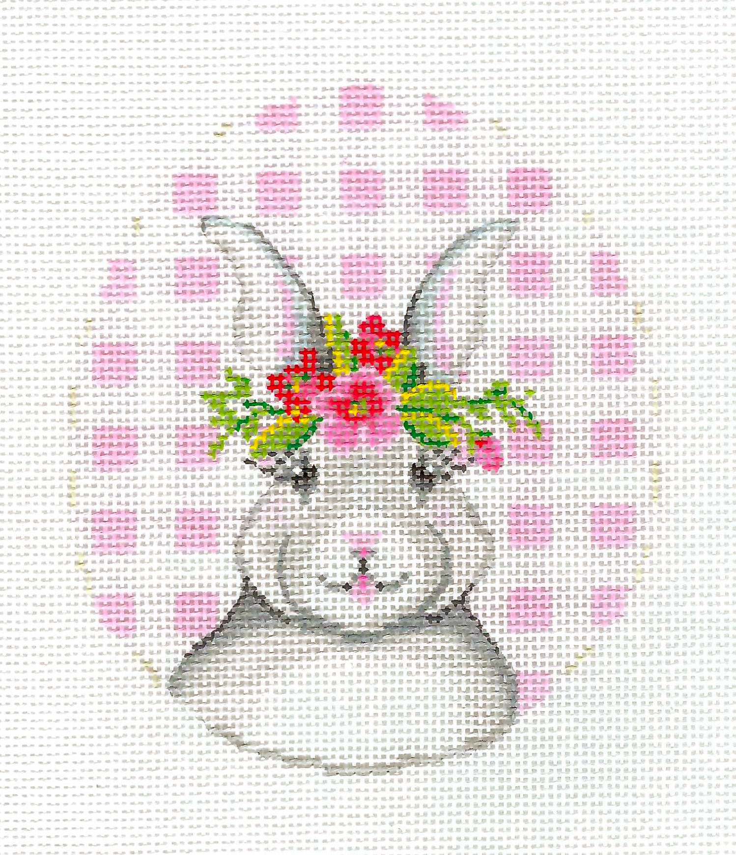 Kelly Clark - Easter Bunny Rabbit on a Pink Checked EGG 18 mesh handpainted Needlepoint Canvas Kelly Clark