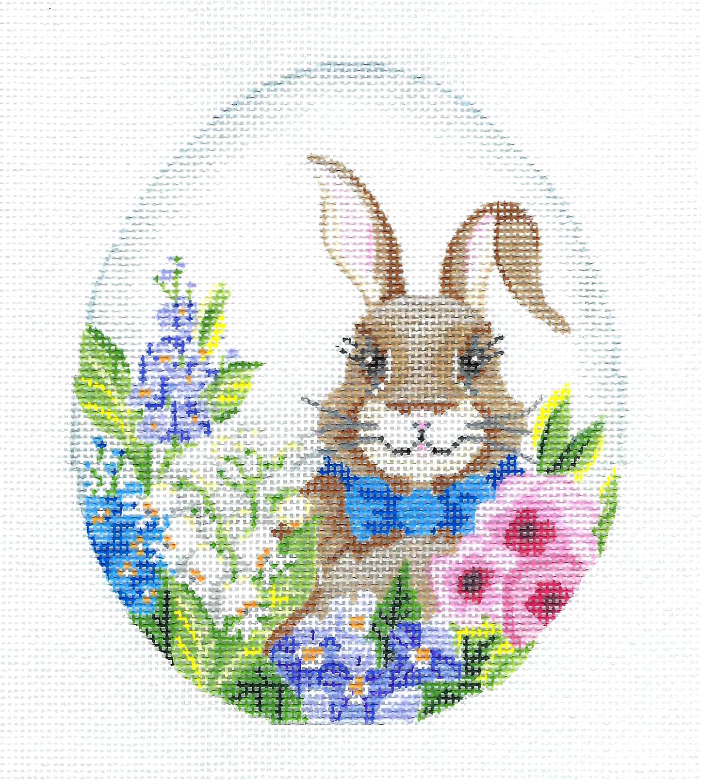 Kelly Clark - Brown Bunny Rabbit on a LG. Floral EGG 18 mesh handpainted Needlepoint Canvas by Kelly Clark