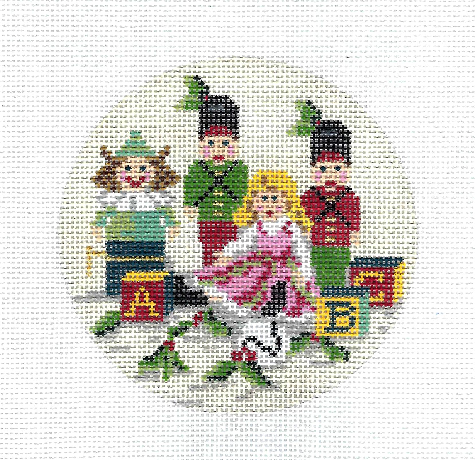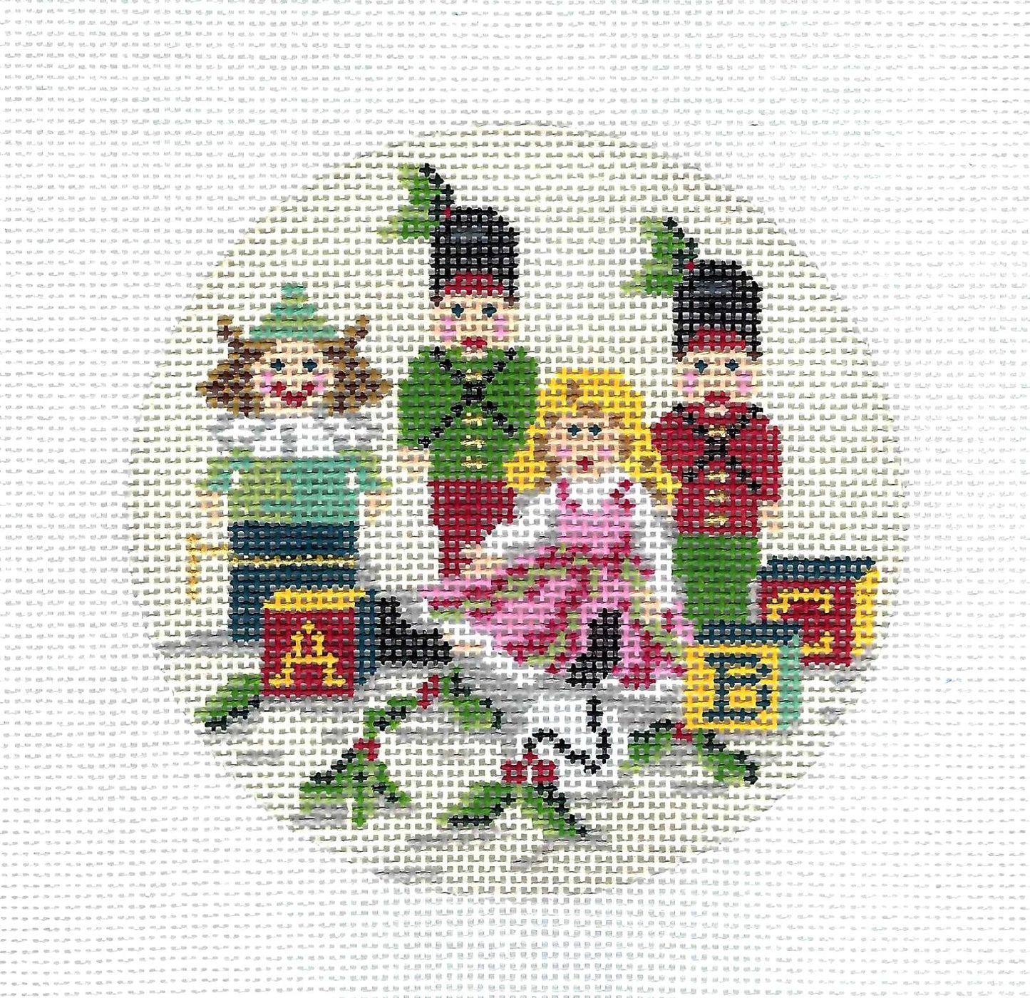 Victorian Toys ~ Doll, Blocks and Soldiers Children's handpainted 18 Mesh 4" Rd. Needlepoint Canvas by Kelly Clark